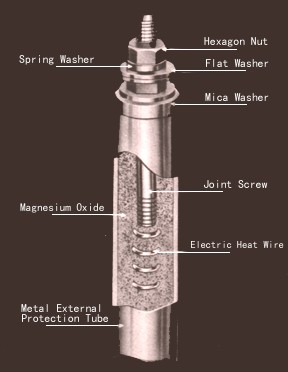 of spiral heater coil inside the metal protective tube, and fill